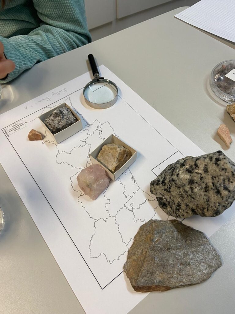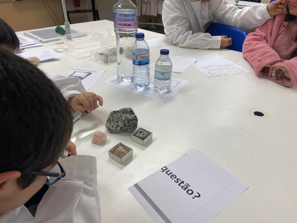 No âmbito da área da Geologia, os alunos do Clube de Ciências, durante o segundo período, participaram com empenho e dedicação na observação de diferentes rochas e minerais que integram os solos de captação das águas minerais. Esta atividade permitiu aprofundar o conhecimento sobre a constituição geológica dos terrenos e compreender a sua influência nas características das águas.